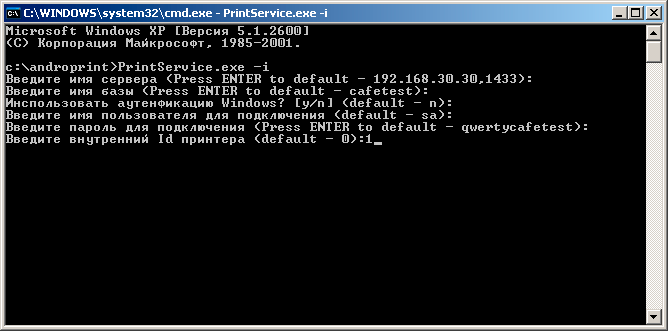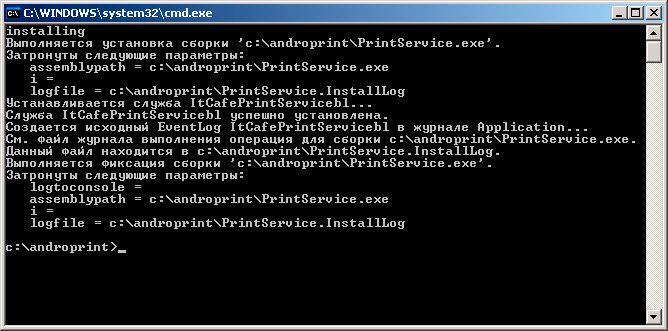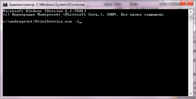3. Открыть файл PrintService.exe c ключем i, вот так: PrintService.exe -i