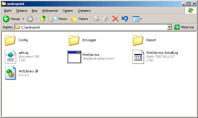 Теперь все что осталось, открыть папку где находится служба, нашем случае это c:\\androprint