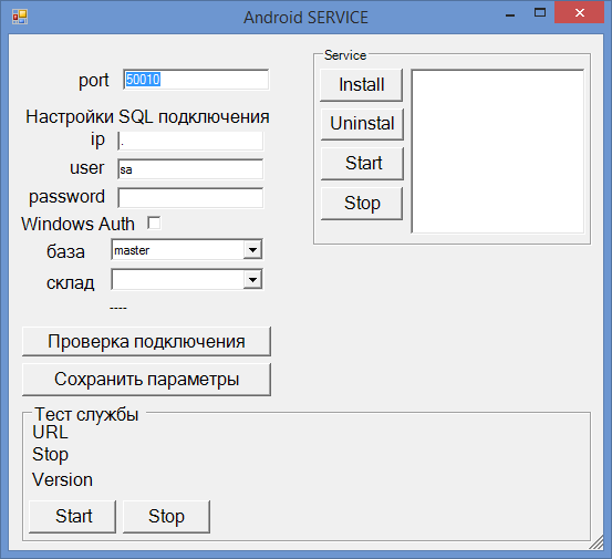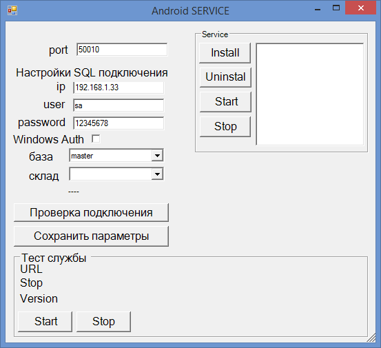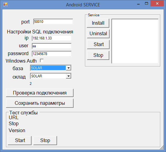 Теперь устанавливаем сервис, нажатием кнопки Install, после установки нажимаем кнопку Start