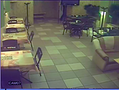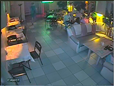 1й зал, ночь, освешения нет, работает ИК подсветка с камеры стоящей на баре, расстояние до бара 5м. |